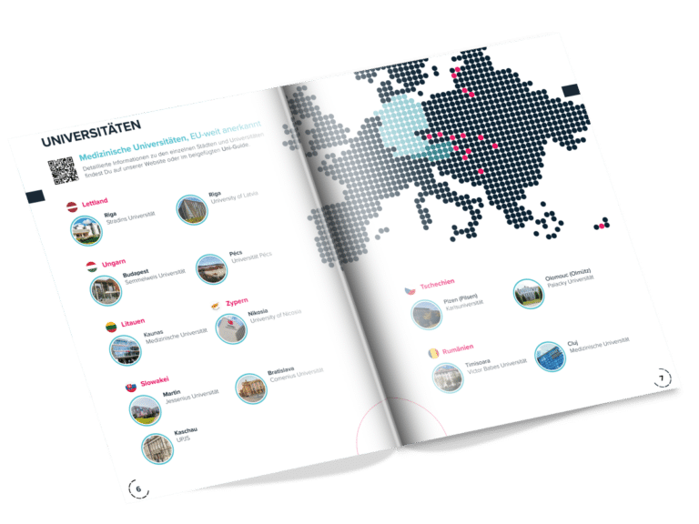 Verschaffe dir Zuhause gemütlich einen Überblick über die verschiedenen medizinischen Universitäten und lasse dich von unserem Angebot überzeugen. Du erhältst alle nötigen Informationen für das Studienhjahr 2022/23 und hast so auch die Möglichkeit alles in Ruhe mit deinen Eltern zu besprechen.