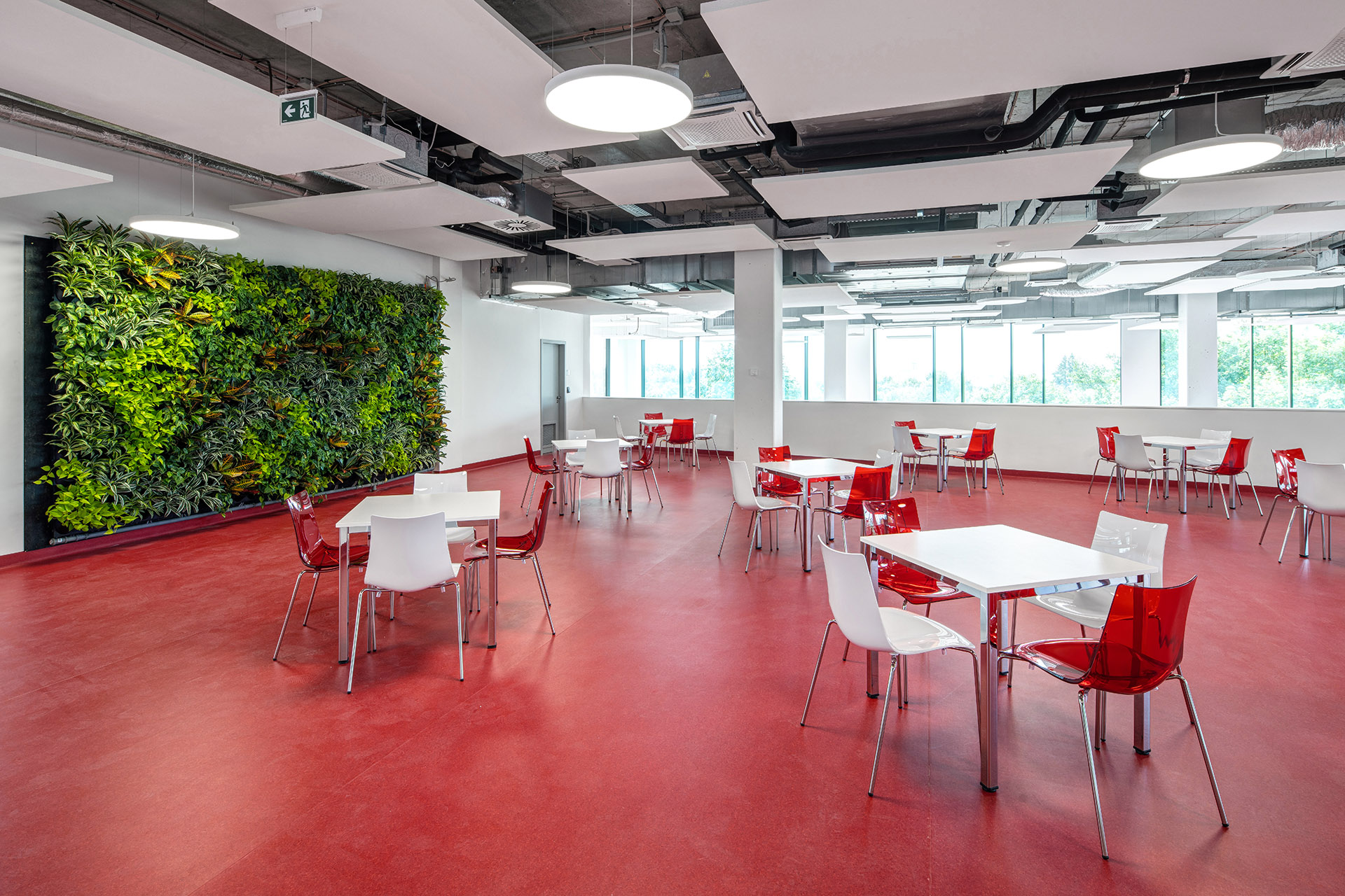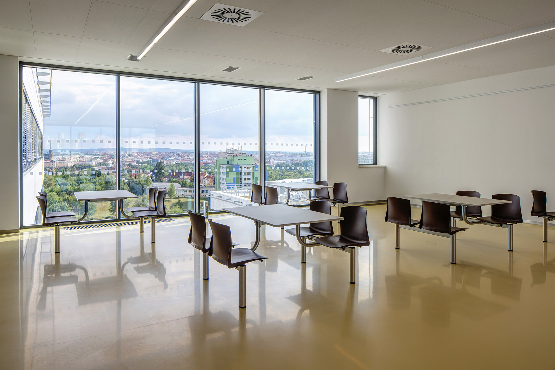 - Studierendenbereiche mit Bibliothek, Lernzonen und moderner Cafeteria
